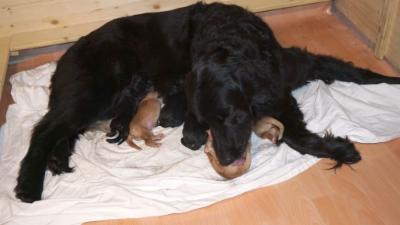 Bolena vom Hohenloher Land mit ihrem C-Wurf ein paar Stunden nach der Geburt.