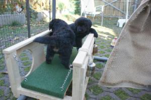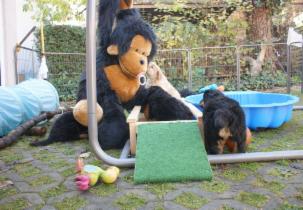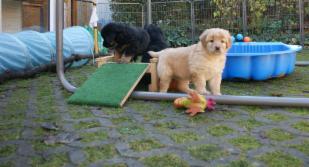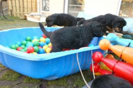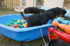Diese sollen Neugier und Eigeninitiative sowie Geschicklichkeit, Bewegungs- und Gleichgewichtsinn fördern. Hier werden die Welpen natürlich auch immer wieder verschiedensten akustischen, taktilen und optischen Umweltreizen ausgesetzt.