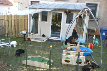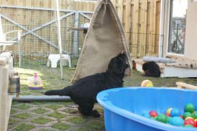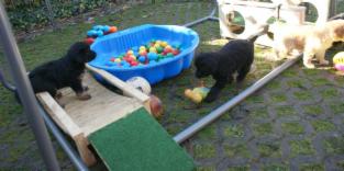 Je nach Wetter haben wir verschiedene Welpenausläufe mit immer unterschiedlichen Lern- und Spielgeräten für unsere Welpen zur Auswahl.