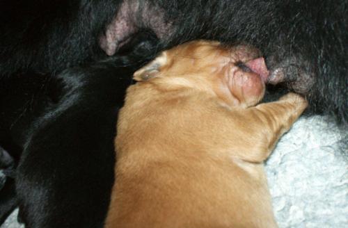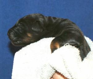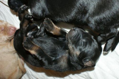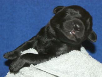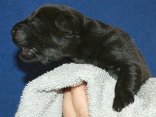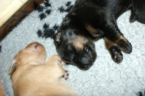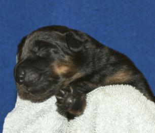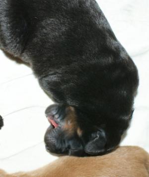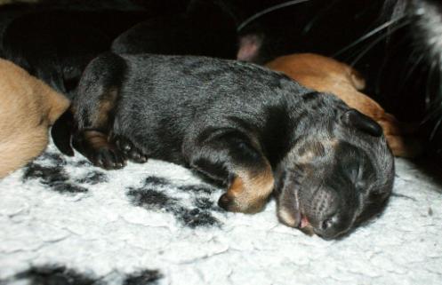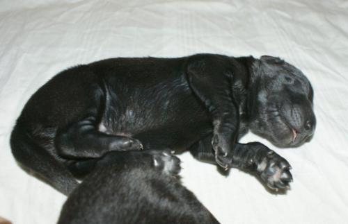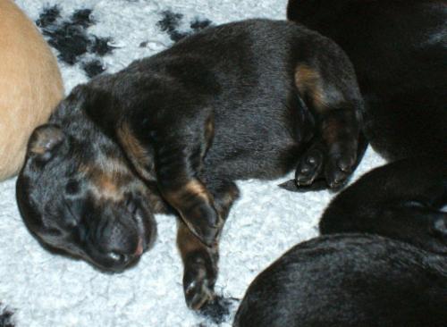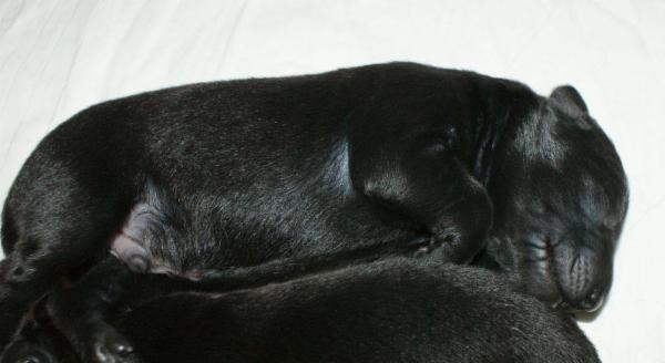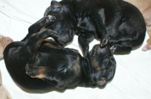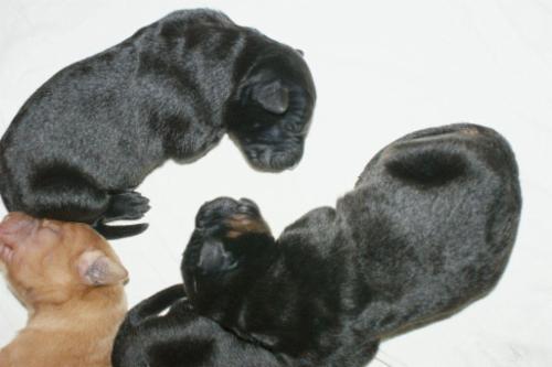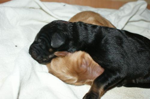 Hündin schwarzmarken 543g: "Bomba" Rüde schwarz 480g: "Blade"