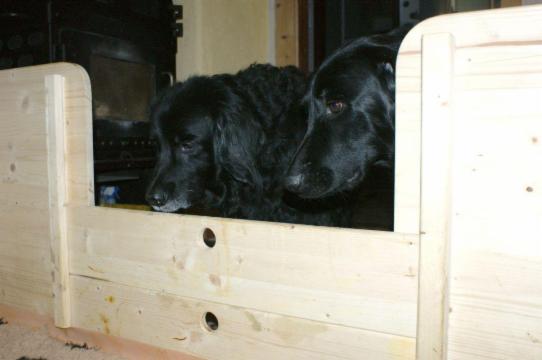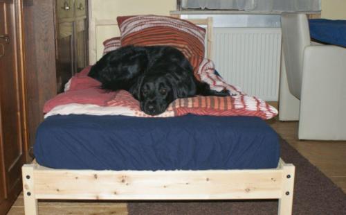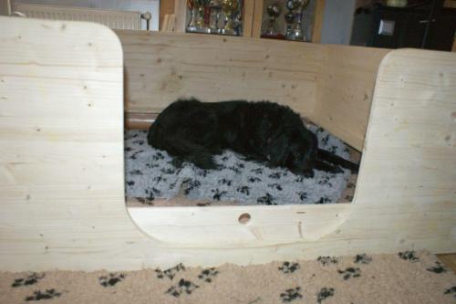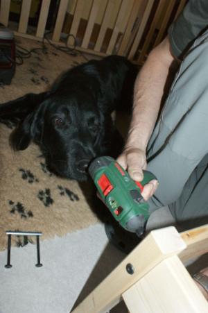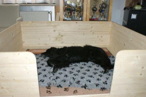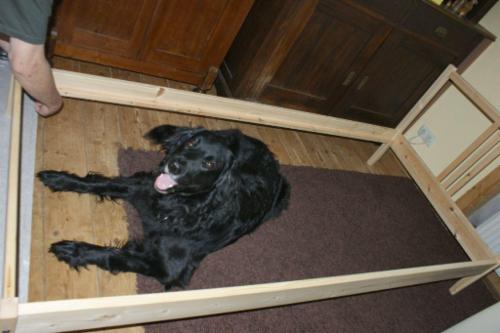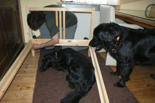 Das Bett für Frauchen neben der Wurfbox wird aufgebaut...