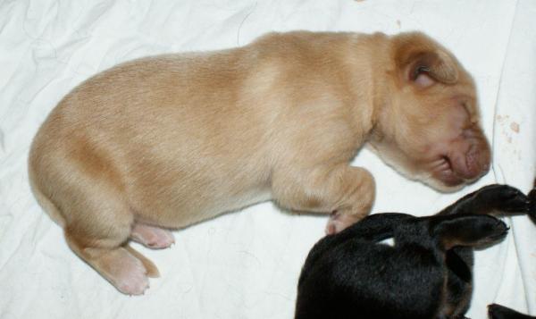 Hündin blond 452g: "Bluna" Rüde blond 540g: "Bond"