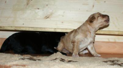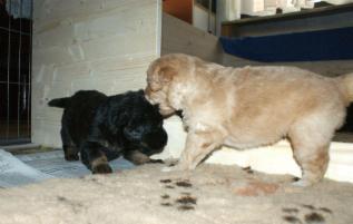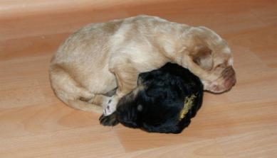 Azora Hündin blond, 574 g Avento Rüde schwarzmarken, 626 g