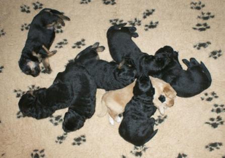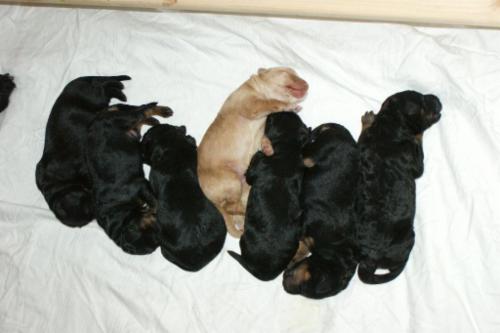 23.09.2012: Die "Tauberklingen-Zwerge" sind da: 5 Rüden und 3 Hündinnen, allesamt rundum gesund, kräftig und sehr aktiv: Rüde sm 576g / Rüde s 624g / Rüde s 612 g / Rüde sm 594g / Hündin b 574g / Rüde sm 626g / Hündin sm 582g / Hündin s 526g.